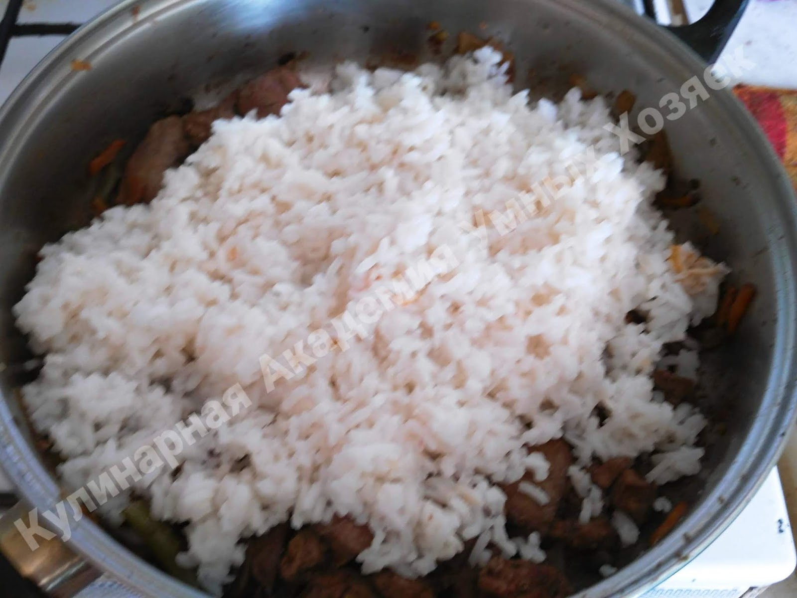 Добавляем в сковороду рис.