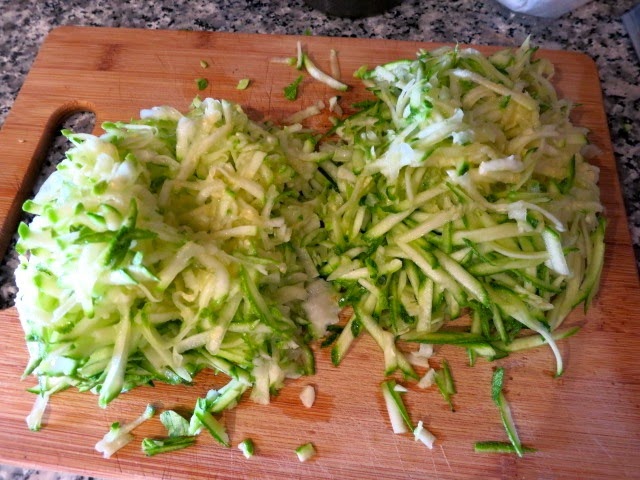 Кладем кабачки в миску, слегка солим и оставляем на 20 минут. После этого отжимаем воду из кабачков руками и/или бумажными полотенцами.